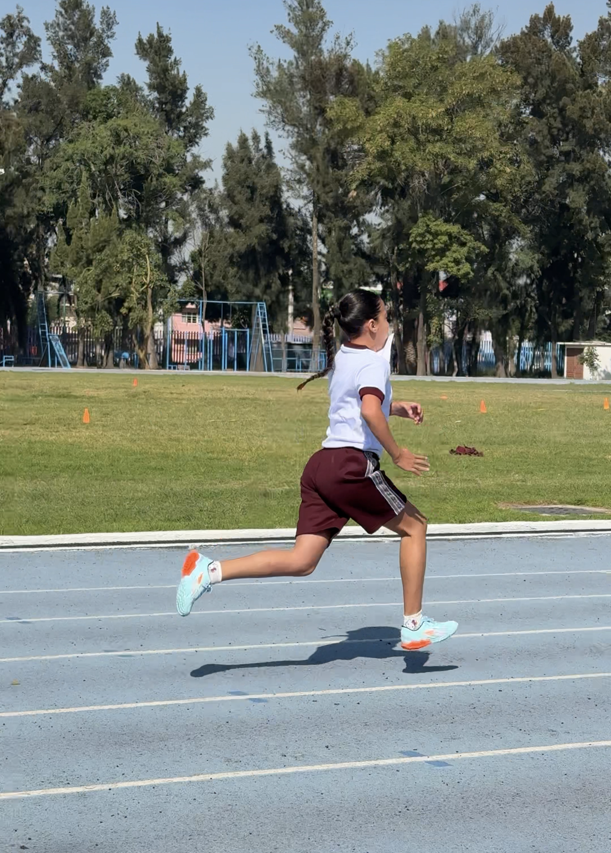 “Los alumnos Jade, Daira y Mauricio participaron en pruebas de atletismo como carrera, lanzamiento de pelota, salto de longitud. Se busca promover en los alumnos el gusto por las actividades físicas, así como resaltar las habilidades que muestran durante las clases. Fortaleciendo habilidades de desplazamiento en la carrera, coordinación, resistencia, trabajo en equipo, compañerismo, generosidad, socializar con alumnos de otras escuelas, amistad.”