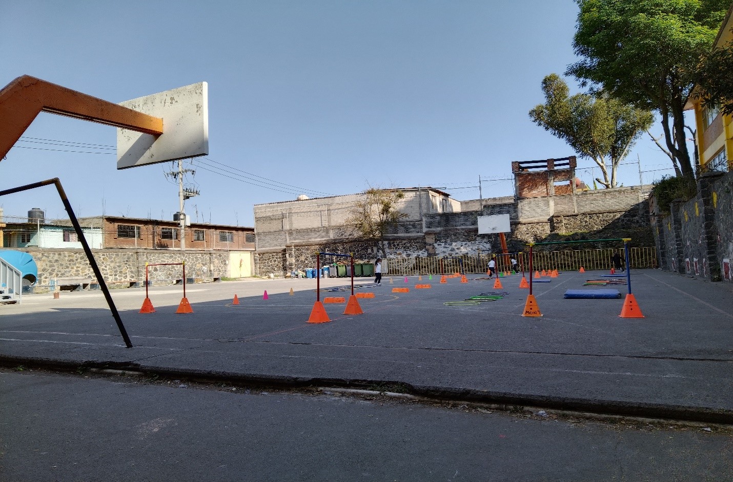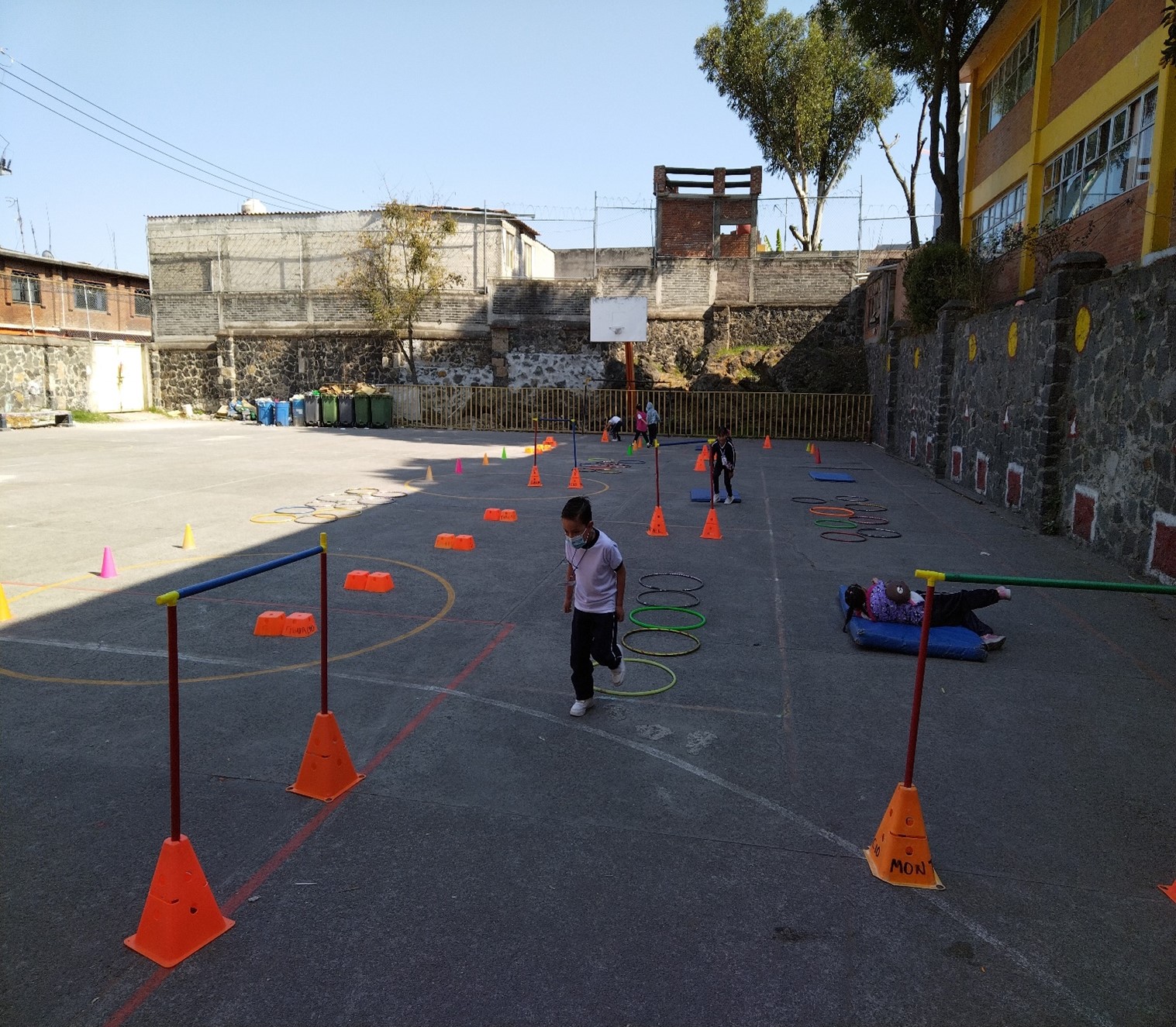 “Se trabajó en el desarrollo de las habilidades motrices básicas con los alumnos del segundo grado. A lo largo de la cancha de basquetbol, los alumnos se forman hasta que sea su turno y posteriormente, realizan el recorrido. Esta actividad fortalece sus habilidades espaciales y motrices, así como su coordinación, pensamiento crítico, confianza y empatía.”