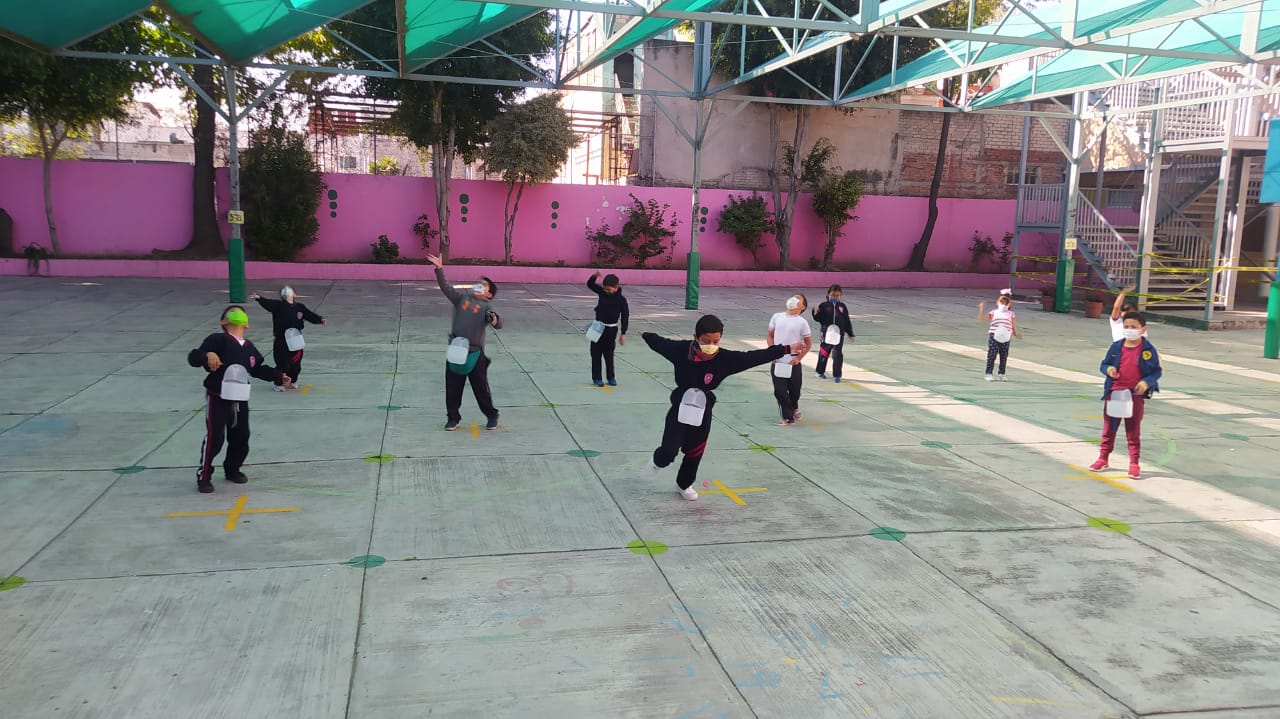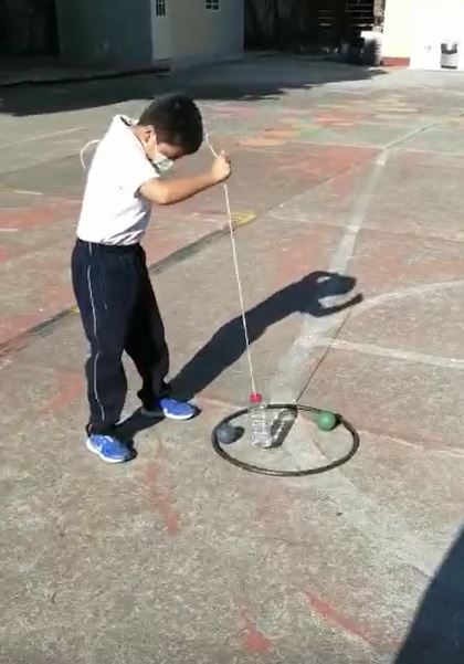 La profesora Ana Luisa Zárate nos comparte un implemento que se utiliza para diversos juegos. Es un galón de plástico con dos cortes. Se puede apoyar en un hilo que se amarra al cuerpo para jugar a atrapar una ficha realizando movimiento de cadera. Ana Luisa propone también el juego “Limpiando la casa” donde distribuye fichas en lugares aleatorios en la cancha y por equipos tienen que recoger la mayor cantidad posible. Estos juegos fortalecen la coordinación óculo-manual, el trabajo cooperativo y la comunicación entre alumnos.